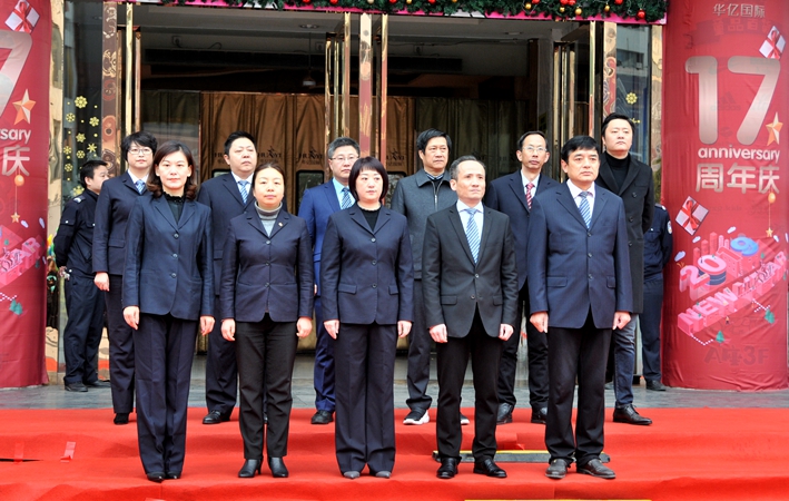 2019年1月1日新年第一天,華億集團(tuán)在步行街華億廣場舉行2019年新年升旗儀式暨華億國際購物中心17周年店慶慶典活動。集團(tuán)董事長項義水,總裁項領(lǐng),集團(tuán)財務(wù)總監(jiān)劉建林,集團(tuán)總裁助理陳雪榮、崔巍崴,偉晨文化公司總經(jīng)理孫艷,華億國際全體經(jīng)營班子成員,以及員工代表參加了慶典活動。華億國際副總經(jīng)理、旗艦店店總王萍女士主持慶典儀式。
