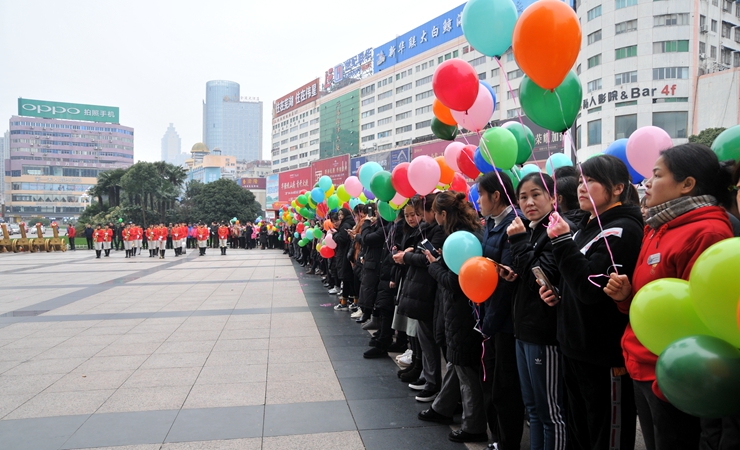 隨后,在主持人的邀請下,華億國際經(jīng)營班子共同切開17周年店慶蛋糕,八門禮炮齊鳴,千余只彩球飛向天空,廣大員工和市民共同感受到了華億國際17周年店慶喜悅氛圍。