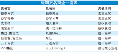 零售業更名潮背后的商業新變革