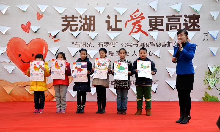 1月15日,華億國際聯合高速地產開展“’有陽光,有夢想’公益書畫展暨慈善拍賣會”活動。本次活動共募集愛心款10000元,并捐獻給蕪湖社會兒童福利院,讓孩子們過個開心年。